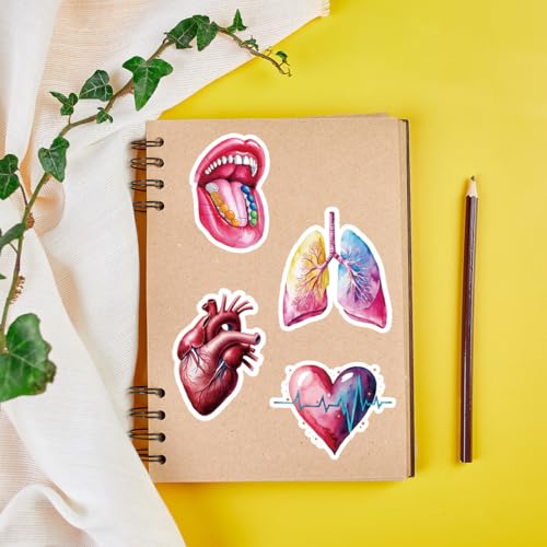 50pcs Human Anatomy Stickers – Waterproof Vinyl Organ Decals for Laptops, Water Bottles, Skateboards, Phone Cases, Suitcases