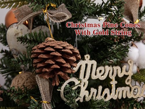 - HANDPICKED LARGE SIZE:Each pine cone is carefully selected to bigger size, ensuring a generous size range of 5-9cm. Their substantial, full shape makes them stand out instantly in any decor, 100% NATURAL: Our pine cones are straight sourced from nature, they retain their natural texture and shape, bringing the simple, warm, rustic charm of nature right into your home, CHRISTMAS MUST-HAVE: The natural pine cones are a must-have for Christmas decorations. Use them to adorn your Christmas tree as eye-catching hanging, make front door wreaths, fill glass bowls as table centerpieces, tuck them into garlands and mantel displays. Bring warm cheer to your holiday setup, IDEAL FOR DIY: Great for various of DIY projects, they are easy to glue and paint, work beautifully for making Christmas gifts, crafting holiday ornaments, rustic wedding décor. Letting your creativity with a rustic personal style, CONVENIENT HANGING – Each pine cone comes with a pre-attached silver hanging string, allowing you free to hang them on Christmas trees, wreaths, garlands and wherever you want without additional tools, easy to effortlessly incorporate them into your decor, ALL SEASON BEAUTY: The pine cones are sturdy and reusable, not just for Christmas, versatile for fall, weddings, parties and home accents. Bring timeless charm to your decor all around the year, NOTICE: Natural pine cones may come in different sizes, colors and shapes