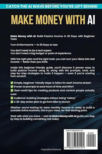 Make Money with AI: A Step-by-Step Beginner’s Guide to Mastering ChatGPT, Prompts, and Online Tools to Start Building Profitable Passive Income Streams in 30 Days Using Artificial Intelligence