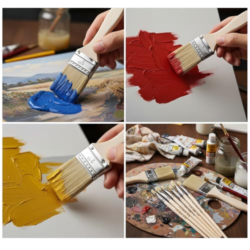 - Durable Construction with Quality Bristles: Crafted with natural bristles held securely by metal ferrules, these brushes resist shedding and stand up to repeated use. Smooth sanded wooden handles offer a comfortable grip, while sturdy build ensures bristles stay intact—ideal for heavy-duty projects like painting walls, fences, or furniture without worrying about bristle loss., ersatile for All Paints & Surfaces: Works seamlessly with paints, stains, varnishes, acrylics, gesso, and more—both oil-based and water-based. Suitable for rough or smooth surfaces: walls, decks, trim, cabinets, furniture, and even DIY art. The 1–4 inch sizes balance quick coverage for broad areas with precision for edges and corners, making them a go-to for diverse tasks., Easy to Clean & Value-Packed: Simple to maintain: clean with water or mineral spirits (based on paint type), air-dry, and reuse. Available in sets of 30 brushes, offering ample supply for large projects or repeated use. This value pack saves money compared to single brushes, perfect for professionals or DIY enthusiasts needing reliable tools., Comfortable for Extended Use: Ergonomic wooden handles fit comfortably in hands, reducing fatigue during long painting sessions. Whether you’re refinishing a deck, decorating furniture, or creating art, the easy grip lets you focus on the project—making DIY time more enjoyable and less tiring., Ready for Every Project, Big or Small: From home renovations (walls, fences) to creative crafts (graffiti, furniture makeovers) or outdoor staining, these brushes adapt to your needs. A practical gift for DIY lovers, homeowners, or pros—ensuring you have the right tool to turn ideas into finished projects, every time.