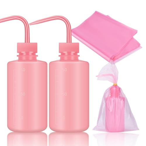 - ★ GOOD SEAL - 1 set includes 2pcs 250ml bottles. They are in good seal, Polypropylene screw closure with its angled stem and draw tube molded in one piece for leak-proof applications. Narrow tip allows for precise watering position and watering volume., ★ CONVENIENCE to USE - Clear scale: The pink semi transparent has 50ml, 100ml, and 250ml scales, with each grid representing 25ml for better control of liquid volume. You can easily measure how much liquid to add to the wash bottles, so you will not waste. And the spout can be cut to increase the flow of washing or other liquid., ★ Tattoo washing bottle bag size: 15X26.5cm. The maximum capacity for a 500ml washing bottle is also suitable for most other Laboratory bottles and makeup bottles., ★ Polyethylene Material:Corrosion resistance, high softness and easily torn off. Blue semi transparent can easily identify the capacity in the bottle., ★ Keep the bottle clean: The tattoo washing water bottle bag covers the entire washing bottle. Dust prevention and prevention of bottle washing color pollution effectively extend the service life of bottles.