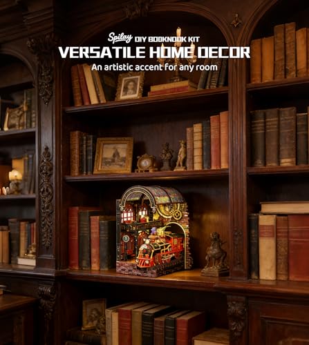 - ***Book Nook Kit for Adults: Meticulously crafted from premium wood, this DIY miniature house kit brings mysterious charm to life with exquisite details and quality. From the exquisite train to the simulated station, every piece and furnitures build this booknook kit a miniature magic book nook!, ***Stress-Relieving diy dollhouse kit: Enjoy a pleasurable and relaxing time with this mini house building kit. It provides a delightful break from daily routines, allowing you to immerse yourself in creativity. As you assemble the intricate components, experience the joy of seeing your masterpiece take shape, making it a satisfying adult craft kits with fantasy appearance. Share the experience, Strengthen your bond!, ***Stunning Miniature Scene for Home Decor: The surprises don't stop with assembly! The DIY miniature kit has a built-in soft, touch-sensitive LED light. Gently open it, and warm light instantly filters through windows and door cracks, creating a warm and fairyland atmosphere that perfectly complements books. Place the completed tiny house on your desk, bedside table, or bookshelf to create an artistic miniature scene. It's the perfect home decoration for adding a touch of fairytale charm to your office, living room, or bedroom., ***The Perfect Creative Gift for Any Occasion: Searching for a unique and thoughtful present? Look no further! This 3D book nook is the ultimate creative gift for book lovers, teens, women, and men on birthdays, Christmas,or Valentine's Day. It's not just a dollhouse kit; it's a memorable experience that shows you care, making it a perfect Christmas gift and birthday gift year-round., ***Easy Assembly with Spilay Support Guarantee: Your crafting success is our priority! This mini house building kit includes a clear, step-by-step colorful instruction and LED light. We offer reliable 24-month support for any missing or damaged parts. Confidently embark on your dream house—we're here to ensure a smooth and enjoyable experience from start to finish.