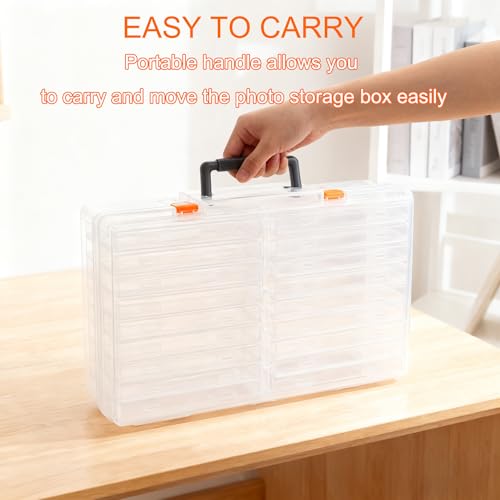 Photo Storage Box 5 x 7 Inches, 18 Inner Extra Large Boxes with Dividers, Clear Acid-Free Photo Storage Containers with Handle, Photo Organizer Craft Keeper for Picture, Craft, Stamp etc