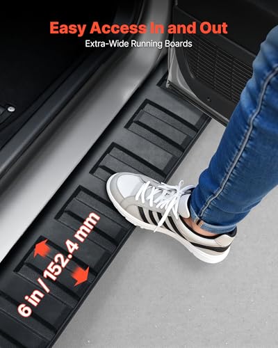 - Precise Fit: These running boards are compatible with 2015-2025 Ford F150 SuperCrew Cab, 2017-2024 Ford F-250 F-350 SuperCrew Cab, with mounting holes that match the factory ones 1:1. No extra drilling required—damage-free installation for a clean look, Strong & Durable: Built from aluminum alloy, these side steps resist bending or breaking. The black powder coating with anti-rust electrophoretic finish provides scratch, water, and rust resistance, staying sturdy in rain, snow, or mud, 6-Inch Extra-Wide Step: The wide running boards & steps provide a larger contact area to support your feet with more room to step. Ideal for seniors or when carrying tools, getting in and out of your truck takes just one easy step, 500 lbs Weight Capacity: These truck steps and running boards remain stable even under heavy loads, so you don't have to worry about instability when hauling gear. They ensure safe performance for both daily driving and outdoor adventures, Non-Slip Design: The step bars feature a non-slip surface that boosts traction, making it harder to slip. They reduce the risk of falls in wet or icy conditions and are great for off-roading, camping, farm work, and construction sites
