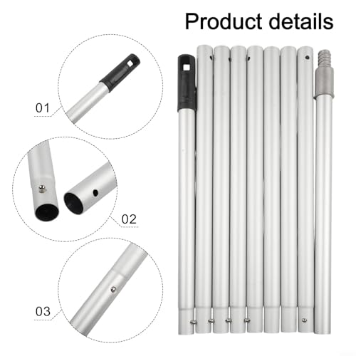 - [VARIABLE LENGTH OPTIONS] With 9 adjustable sections, this aluminum telescopic pole can extend from 42m (1.3ft) to 3.6m (12ft), providing flexibility for cleaning high areas such as ceilings and windows without the need for ladders., [STURDY YET LIGHTWEIGHT] Made from aluminum and ABS materials, this pole is both rust-resistant and lightweight, ensuring that it remains easy to maneuver while providing a strong grip through its coated handle., [ TOOL COMPATIBILITY] Featuring a standard threaded end, this pole easily attaches to various cleaning heads and brushes (accessories not included), making it for numerous household tasks., [USER-FRIENDLY DESIGN] The pole can be easily extended, locked into place, and retracted for convenience. Its compact size allows for effortless storage when not in use while maintaining stability during operation., [MULTI-FUNCTIONAL CLEANING TOOL] for reaching difficult spots like ceilings, furniture tops, blinds, and corners, this extension pole is essential for thorough cleaning around your home.