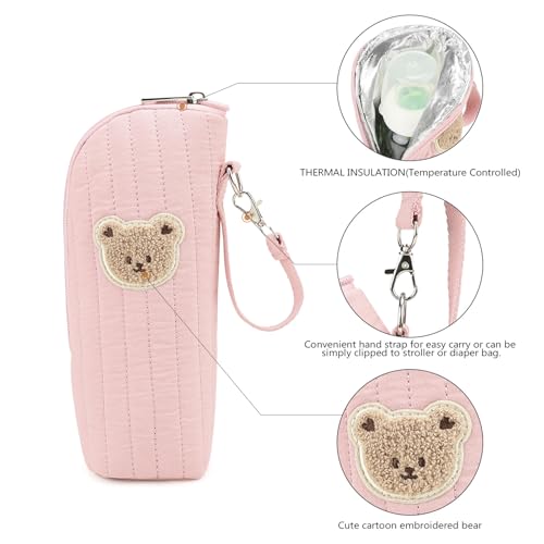 Insulated Bottle Bag | Baby Bottle Cooler Bag with Bear Design | Portable Tote for Outdoor Transport Breast Milk Food Preservation Storage Breastfeeding
