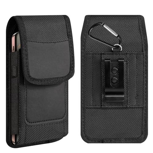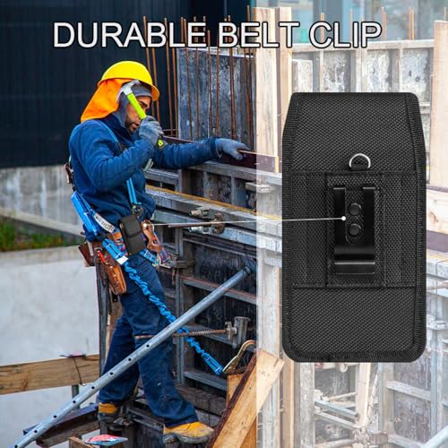 - Wide Compatibility & Perfect Fit: This rugged black nylon phone holster fits iPhone17, iPhone 16, iPhone 16 Pro, iPhone 15, iPhone 15 Pro, iPhone 14, iPhone 14 Pro, 13 Pro, 12 Pro, 11 Pro, Xs Max, and Samsung Galaxy S25, S24, S23, S22, S21, Galaxy A54, A53, A52, A51, A50 series. Compatible with slim cases or OtterBox Commuter cases, Multiple Carrying Options for Flexibility: This versatile phone pouch offers multiple carrying options: use the belt clip, choose between horizontal or vertical belt loops, or clip it to your waistband or place it inside your handbag's pocket. Whether you're hiking, camping, or simply going about your daily routine, this holster ensures quick access and secure storage for your phone, Durable Construction & Maximum Protection: Crafted from tough nylon, this holster is built for durability and long-lasting protection. The soft interior lining cushions your phone and prevents scratches, while the Velcro closure secures your device safely while allowing easy access. Whether you're out in the field or navigating your daily activities, this holster is perfect for outdoor living, trekking, and everyday use, Perfect for Outdoor & Professional Use: Designed to handle the toughest environments, this rugged phone holster is ideal for forestry, construction, farming, and repair work. Built to withstand challenging outdoor conditions, it keeps your phone secure, accessible, and ready for action at all times, Lightweight & Convenient Design: Despite its robust exterior, this phone pouch is lightweight and compact, making it effortless to carry without weighing you down. Say goodbye to bulky pockets and hello to a convenient, on-the-go solution – now upgraded with an extra credit card slot for added storage and everyday convenience