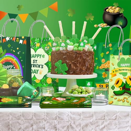 - St Patrick's Day Gift Bags Set: This st patrick's day paper gift bag set contains 24 st patricks day party bags, which are sufficient in quantity and various in styles, and are very suitable for storing candies, chocolates, snacks, prizes and other st. patrick's day party favors at st patricks day, Creative Design: The energetic shamrocks, leprechauns, gold coins, green hats and lucky green on the st patricks day treat bags exude the spirit of the Irish and can make your st patricks day decorations party more memorable and full of joy, St Patricks Day Gift Bags with Handles: Each of the st. patrick day party gift bags in the irish holiday party supplies comes with a sturdy handle to ensure easy carrying, making it easy for you to share the good luck and charm of the Irish at your st patricks day party, Excellent Irish Party Bags: These st. patrick's day gift bags are made of reliable materials, durable and not easy to break, tear or fade, which can bring a unique irish shamrock gift bags use experience to your st. patrick's day guests, Wide Application: The st. patrick's day treat bags in the saint patricks day decorations are suitable for many scenes, such as happy st patricks day party, st patricks day party, green st patrick's day party, Irish holiday party, lucky clover party, etc