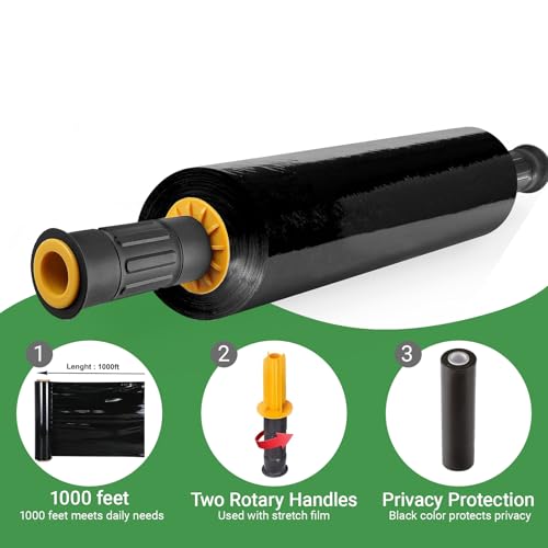 - 【HEAVY DUTY STRETCH WRAP】 Constructed from premium plastic material with high gauge, ensuring industrial-grade strength and durability. This plastic wrap offers superior protection during transport, as its industrial strength and sturdiness can firmly secure heavyweight, large, or oversized items whenever you need, 【EASY APPLICATION & PRIVACY PROTECTION】It makes packaging items quicker and more efficient. This easy-to-use wrap is an ideal choice for storage or moving. It adheres to itself without leaving any messy residue when unpacking. In particular, the black stretch film boasts excellent privacy protection. It can effectively conceal the items inside the packages, preventing privacy leaks caused by exposed contents during transportation and handling. Meanwhile, it can also reduce external visual disturbances and better protect the safety of your goods, 【MULTI-USE & WIDE APPLICATION】 Boasting a large size, this plastic wrapping roll is an essential moving supply! It can wrap moving boxes, TVs, and cover furniture to safeguard its surface. This stretch wrap is suitable for moving, storage, office supplies, express logistics, pallet packing, household packing, and protecting all your daily items, 【SELF-ADHERING】 This stretch wrap is self-adhesive and can be easily removed after use, leaving no marks or residue on the wrapped products. You can wrap and protect all your belongings without damage, 【BLACK STRETCH FILM】 You will receive black stretch film and 2 handles. The dimensions of the stretch film are 15 inches in width x 1000 feet in length, and the thickness is 60 gauge.