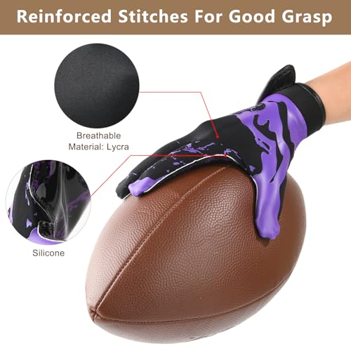 Goporoy Youth Football Gloves for Kids Excellent Grip Football Receiver Gloves, ICY Purple Youth M/L