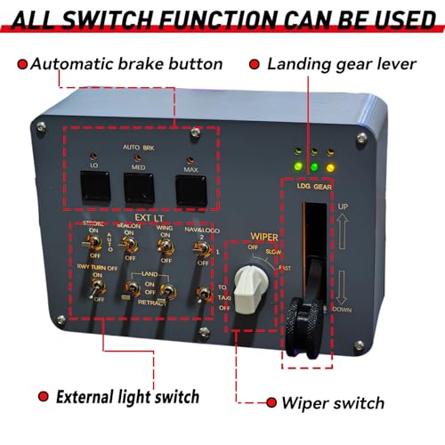 - The Button Box activates the electrical system ---- With PETG 3D-printed design, Light Landing Gear Control Box for 2020 FENIX320 Flight Racing Game Simulator.It made of PETG materials for 3D printing,acrylic panel painted with laser engraved text, the text has a translucent effect., The central control box quality and feature ---- It is a simulated flight 2020 FENIX 320 light landing gear control box, including external light control switch, automatic brake button, captain position wiper switch, landing gear control handle. One click configuration, no need for setting, automatic brake and landing gear indicator lights synchronized with the game. Now upgraded to a PCB circuit for enhanced durability and long-lasting use., The central control box functions---- The function of Button Box including for external light switch, Landing gear lever, Automatic brake button, Wiper switch.It's very convenient for you to play on flight 2020 FENIX 320 light games., The central control box quality and features---- Good quality box, All Sim switch boxes are made with high-quality PLA plastic and metal switches. These are 3-D printed and will have small print lines. Product was extremely easy to setup and map keybindings to. Buttons and switches all feel really good and sturdy. It is easy to program, the LED back lighting is great in Game, and combined with the buttons on my steering wheel you don't have to touch your keyboard at all once I start playing., Product functions --- USB Simulation Racing Instrument Center Control Button Box fit for Suitable for the simulation flight 2020 game and only applicable to the aircraft model Fenix320.