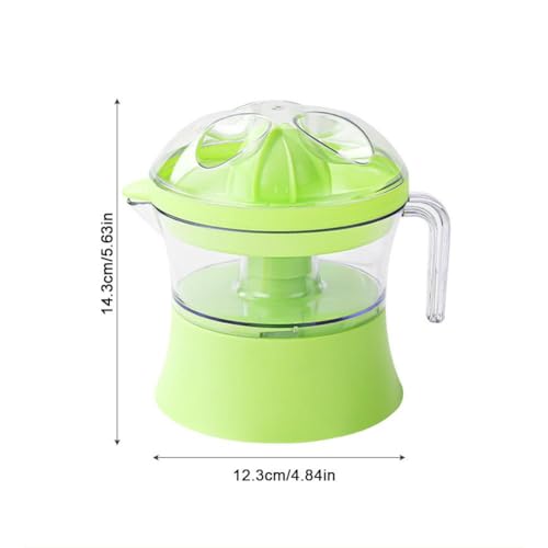 - 【SIMPLE & HEALTHY CITRUS JUICER】 – Extract fresh, nutrient-rich juice from oranges, lemons, limes, and grapefruits. Preserves natural vitamins and enzymes for a delicious, healthy drink—perfect for juicing enthusiasts!, 【24OZ LARGE CAPACITY WITH POUR SPOUT】 – Enjoy 2-3 servings (24oz/3 cups) of fresh-squeezed juice in one batch! Features a built-in handle, easy-pour spout, and removable strainer to collect pulp and seeds. All parts are dishwasher-safe for quick cleanup., 【SPACE-SAVING & PORTABLE DESIGN】 – Ideal for small kitchens, dorms, RVs, or apartments. Compact and lightweight, it fits easily on countertops or in cabinets—great for travelers or minimalists!, 【EASY ONE-TOUCH USING】 – Juicing is effortless with the auto-reversing electric reamer. Just press down to start and release to stop—no peeling or pre-cutting required! Saves time for busy mornings., 【Dimensions】 12.3 x 14.3 cm/ 4.84 × 5.63 inch. The lightweight, space-saving design makes it ideal for small kitchens, dorm rooms, RVs, or apartments, fitting neatly on your countertop.