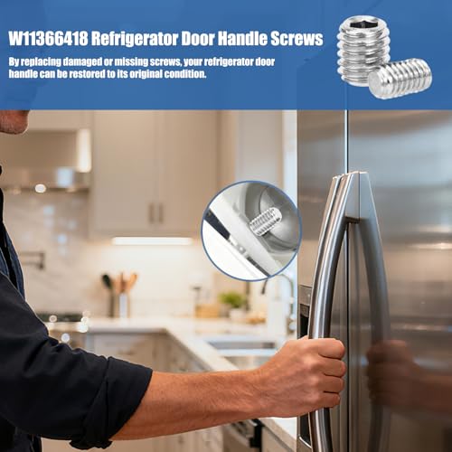 - Package Content: Each set includes 10 pieces of refrigerator freezer door handle screws and 2 types of hexagonal wrenches for quick and easy installation. No additional tools are needed, and it saves time and effort., Excellent Material: Made of good-quality stainless steel, the freezer door handle screws are sturdy and durable, suitable for humid environments, and are not easy to deform or oxidize after long-term use., Versatile Use: Appropriate for most refrigerator models, the freezer door handle installation screws can replace damaged or lost screws, restore the original function and stability of the door handle, and ensure safety for daily use., Special Design: Designed for easy installation, the freezer handle screws come with two hexagonal wrenches to fit different screw sizes. They are easy to operate, and even non-professionals can easily complete the replacement., Wide Compatibility: Suitable for most refrigerator models, compatible with multiple replacement part numbers, such as W11366418, W10010140, AP6888139, WPW10010140, W10114271, PS12723933, W10664010, W10223573, 4929325. Please check your refrigerator model before purchasing to ensure a match.