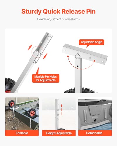 VEVOR Boat Launching Wheels, 600 lbs Load Capacity, 12" Aluminium Alloy Transom Wheel with Inflatable Rubber Tires, Folding Launch Wheels with 4 Quick Release Pin, Fit 13' Long Inflatable Fishing Boat