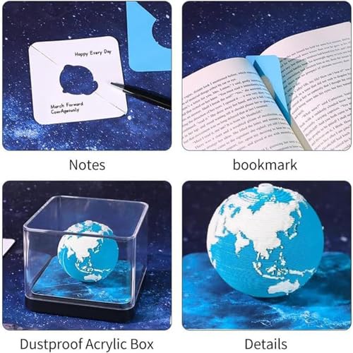 - Layered Miniature Display: Experience a gradual landscape reveal with a 3D paper-cut Earth model, providing a layered panoramic miniature world in hand for an engaging and artistic desk calendar display, Symbolic Time Representation: This 3D desk calendar combines an interactive page-tearing design with a celestial-inspired concept, creating a symbolic connection to time and nature for a culturally enriching daily experience, Artistic Science Fusion: Showcasing scientifically designed engravings and true-to-life continental forms, this piece highlights sea coverage through blue-white, art-meeting-science decor, adding sophistication to everyday spaces, Stable Calendar Solution: This 3D desk calendar integrates a bookmark for easy page marking while providing schedule tracking and inspiring quotes, blending functionality with elegant desk decor effortlessly, Timeless Decor Improvement: This 3D desk calendar combines dynamic beauty with a minimalist aesthetic design, improving your interior decor while serving as an elegant art display piece that complements any space with its refined style and timeless appeal
