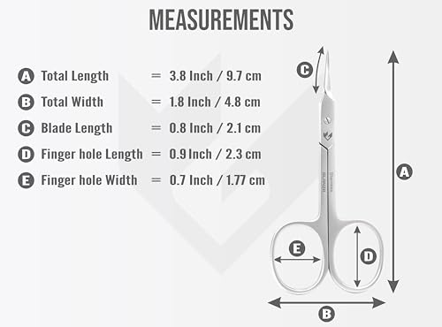 - PREMIUM QUALITY BUILD - Made from surgical grade high carbon 420-A stainless steel with HRC-level/hardness of 50-52, these are rust-resistant, durable, and long-lasting. Designed as small scissors all purpose, they serve as reliable nail supplies and nail tech must haves for professionals and beginners alike., FEATURES/SPECIFICATIONS - These feature sharp, pointed & extra slim blades with screw-fitted for smooth performance. Perfect as tiny scissors for versatile use., DESIGN - These 3.5 inches perfectly sized scissors are Ergonomically crafted with large finger holes for comfort to ensure better control. Their sharp edges make them efficient tool for precise cuticle trimming. Sand finish body with mirror finish blade adds elegance., USE CASES - Ideal for salon and home use, these scissors are perfect tool for manicures and pedicures. They work as cuticle trimmer and in cuticle remover kit. Beyond nail care, they are also great as beard and mustache scissors for men. Additionally, they serve as facial hair scissors, facial trimmer for women and eyelash scissors. They double as eyebrow scissors for women and men. For creative use, they are excellent as embroidery scissors curved., PACKAGING - Each pair of scissors comes in a stylish high grade artificial leather case along with protective silicon tip, ensuring safe storage and easy portability. A must-have among nail tech supplies and nail essentials, these are gift-ready. Whether for travel, salon professionals, or personal grooming, these premium nail implements deliver both function and elegance., PERFECT GIFT FOR HIM AND HER: Premium packaging makes it a thoughtful gift for family & friends, whether for personal grooming, beauty, or as specialized tools.