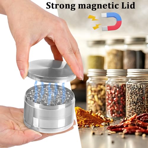 - Spice Grinder: Grind for kitchen spice,it is a good tool for the kitchen, Sharp Grinding:Sharp teeth for smooth grinding, Magnetic Lid:Can reduce the spillage of spices during grinding and storage, Easy to clean:Matching gadgets make cleaning easy