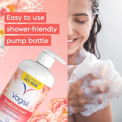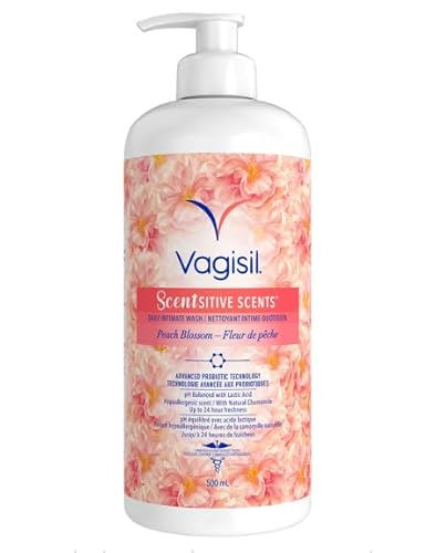 Vagisil Feminine Wash for Intimate Area Hygiene | Scentsitive Scents | pH Balanced and Gynecologist Tested | Peach Blossom | 500 mL with Pump