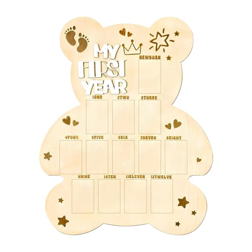 - Monthly Memory Preserver: Highlight your baby's trip using the 12-month photo display trough, designed to track growth stages and celebrate each milestone by showcasing treasured times in an organized and meaningful way, Adorable Bear and Bottle Shape: The baby photo board highlights a playful bear and milk bottle design, adding fun and decorative appeal to your memories, crafted to enhance the charm of baby photos with its cute and lively presentation, Flexible Placement Solutions: Designed for versatile setups, with options to suspend or place on a tabletop, featuring a sturdy base and integrating a carrying hook, Dependable Structure: This photo board is made from sturdy pine wood, providing a secure and long-lasting solution that highlights high-quality materials for memorable displays, Amazing Present: Enhance birthdays, holidays, and events with this baby photo board, creating unforgettable memories for family and friends through best presenting