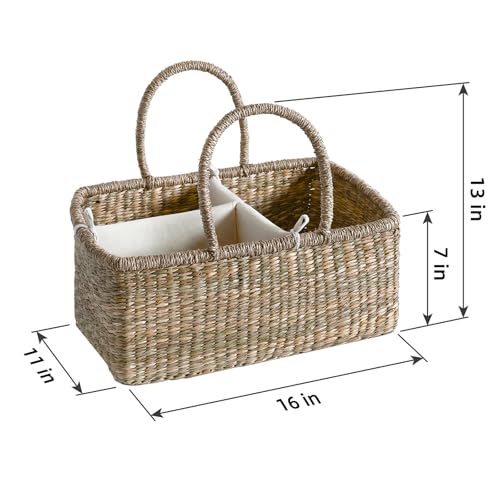 Quincry Premium Wicker Baby Diaper Caddy Organizer, Woven Seagrass Basket with Handles, Diaper Basket with Dividers (Rectangle)