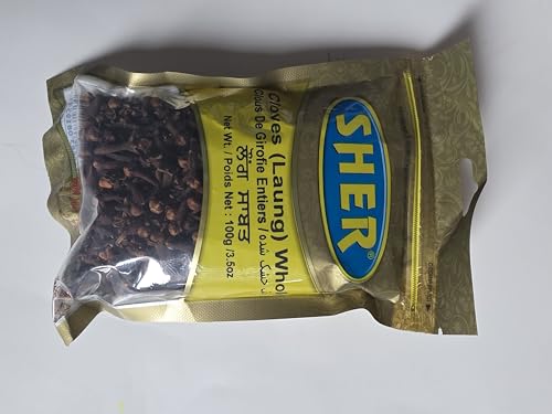 - PREMIUM WHOLE CLOVES: High-quality, aromatic whole cloves (Laung) sourced from India, perfect for cooking and seasoning, PACKAGE SIZE: Convenient 100-gram package size, ideal for home cooking and culinary needs, ALLERGEN INFORMATION: Processed in a facility that also handles tree nuts, wheat, soy, celery, mustard, sesame seeds, and dairy, STORAGE FEATURES: Resealable packaging helps maintain freshness and aroma of the whole cloves, VERSATILE USE: Ideal for both sweet and savoury dishes, traditional cooking, and aromatic spice blends