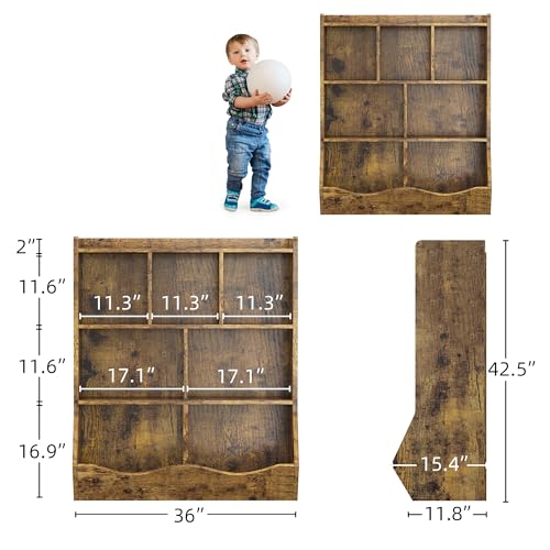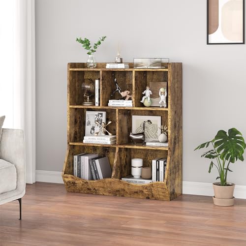 Garvee Rustic Toy Storage Cabinet, 3-Tier Kids Bookshelf Brown Bookcase for Storage Books and Toys, Multi-Shelf with Cubby Organizer for Bedroom and Playroom