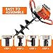 72CC Auger Post Hole Digger, 2 Stroke Gas Powered Earth Post Hole Digger with 2 Auger Drill Bits(6" & 8") + 1 Extension Rods for Farm Garden Plant, Orange