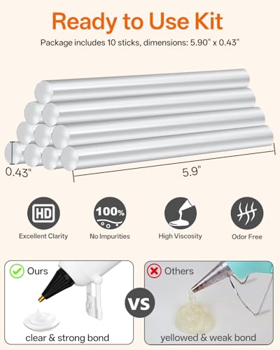 - Powerful & Rapid Bonding Solution: Experience fast, strong, and eco-friendly adhesion with the 80W high-power heating system. It achieves a quick melt-down in under 2 minutes, ensuring reliable and efficient performance for all your projects, from delicate crafts to heavy-duty repairs, Versatile for Endless Projects: Ideal for a wide range of applications including crafts, DIY home decorations, woodworking, quick repairs on shoes or furniture, product packaging, and even minor automotive interior fixes. This is the only glue gun you need for creative and utilitarian tasks, Anti-Drip & Heat-safe Design: Achieve clean, controlled application with the anti-drip nozzle – no messy drips or globs, perfect for detailed crafts. The heat-resistant rubber coating on the thermal cap prevents accidental burns during use, Ergonomic & User-Friendly Design: Crafted for comfort and safety, the full-size gun features a comfortable grip for extended use without fatigue. It comes with a built-in stand for stable placement and a helpful LED indicator light to show when it's powered on and ready, Ready-to-Use Complete Kit: Arrives fully equipped with 10 pieces of universal 7/16-inch clear glue sticks. You have everything you need to start your projects right out of the box, saving you time and hassle