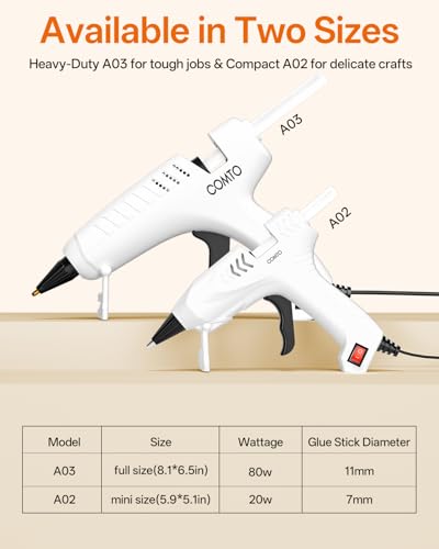 COMTO Full Size Hot Glue Gun with 10 Sticks, Heavy Duty Glue Gun with 80W Super Power, Anti-Scald Nozzle and Easy Squeeze Trigger, Perfect for Crafting, DIY and Repairs - White