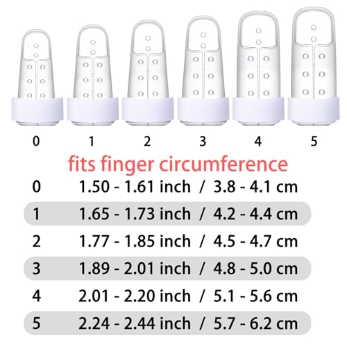 - Package includes: You will receive six finger splints of various sizes, designed to accommodate different fingers and meet diverse needs. Please measure the circumference of your finger prior to purchase., Comfortable material: The trigger finger splint is constructed from high-quality plastic that is both comfortable and breathable. Its ventilation hole design enhances comfort during extended wear, minimizing any discomfort associated with prolonged use., Adjustable design: The adjustable strap allows for a customized fit on different fingers, enabling you to freely modify the tightness and pressure according to the thickness of your finger., Widely applicable: This finger splint is suitable for conditions such as fractures, strains, and sprains. It effectively protects injured fingers during recovery while helping to prevent secondary damage. The adjustable trigger finger splint can be worn both at night and throughout the day., Applicable crowd: Designed for adults, this product caters to both left and right hands, providing professional care tailored to meet the rehabilitation needs of fingers in various scenarios.