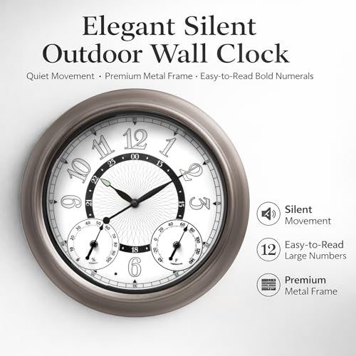 Pytha Sight Outdoor Clock,15 Inch Metal Outdoor Clocks Waterproof with AI Auto Light Sensor, Outdoor Wall Clock for Patio,Pool,Garden & Porch, Large Numerals Easy Read