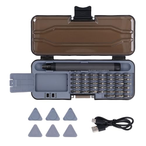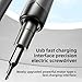 - APPLICABLE SCENARIO: This accurate electric screw driver features easily adjustable torsion and stable torsion output, which can meet all your needs, including PC, computer, laptop, mobile phone, RC car, drone, keyboard and other electronic devices, POWER SUPPLY METHOD: This cordless mini electric screw driver is powered by a 500mAh rechargeable li ion battery and can tighten over 500 screws. Only takes one hour to charging quickly. The universal Type C charging interface makes charging the electric screw driver convenient, STRONG LOAD BEARING CAPACITY: This electric mini screw driver is equipped with a powerful motor, providing higher load bearing capacity at a no load speed of 150 revolutions per minute, offering efficient fastening performance and saving your time and effort, HUMANIZED DESIGN: The rechargeable electric screw driver adopts an ergonomic pen shaped design, which is lightweight, balanced, comfortable and can be used continuously. Through a convenient CW or CCW switch, which is easy to switch between driving and removing the screw, WIDE APPLICATION RANGE: Equipped with 38 accurate screw driver bits, including PH, pentalobe, flat, triangular, hex, pentagonal, and other types, this electric screw driver kit meets all the needs of professionals. Suitable for complex deep hole applications. The integrated magnetizer provides immediate magnetization for the screw driver bits, while the magnetic pad is suitable for tracking tiny screws. Metal tweezers are helpful for prying and poking. Tweezers are a nice choice for handling