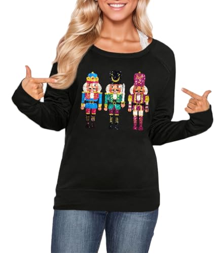 ALIREVERIE Christmas Womens Graphic Funny Holiday Long Sleeve Sweatshirt Top Shirt Nutcracker XL