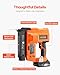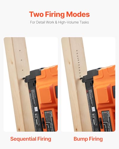 - Versatile 2-in-1 Use: Compatible with 0.6-2.2 inch (15-55 mm) brad nails and 0.6-1.6 inch (16-40 mm) staples, this cordless brad nailer is suitable for trim installation and furniture assembly. One tool handles multiple tasks, meeting your diverse needs, Tool-Free Depth Adjustment: Our battery powered nail gun easily sets the ideal nail depth without extra tools. Switch quickly between different materials and projects while ensuring each nail is driven at the precise depth for a flawless finish, Two Firing Modes: This 18 gauge brad nailer supports single and bump firing to match different tasks. Whether handling fine detail work or high-volume tasks, the dual modes ensure efficient nailing with both precision and speed, Cordless Convenience: This cordless nail gun is powered by two 2.0Ah battery packs. The cordless design enables mobility and flexibility during work. Ideal for hard-to-reach areas or mobile tasks, it ensures uninterrupted work and improved efficiency, Quick Jam Release: Equipped with a quick-release nose, this 20V brad nailer allows you to extract jammed nails quickly and easily. Clear jams in seconds without interrupting your work, ensuring a smooth, efficient nailing experience