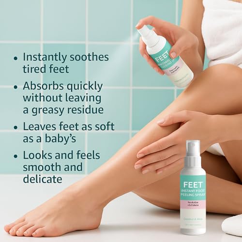 - The Essential Tool for Beautiful Feet — This foot peeling mask spray is your must-have summer beauty item, revealing captivating foot charm just in time for sandal season. Confidently show off your beautiful feet, never again facing awkward moments, Gently and effortlessly removes calluses and dead skin from feet — This foot callus remover spray features a dual formula of salicylic acid and glycolic acid to effectively soften and remove rough calluses while reducing dead skin buildup and accelerating skin renewal, Deeply Hydrating & Nourishing — This callus remover for feet spray enriched with coconut and menthol, this exfoliating foot mask delivers intense hydration and nourishment, leaving your feet baby-soft and smooth, At-Home Foot Care — Spray this foot peeling mask directly onto clean, dry feet and massage to remove dead skin. For best results, use with an exfoliating tool. This foot mask eliminates calluses and dead skin right at home, saving you the expense of monthly pedicures, Note — Contact us immediately if any damage, leakage, or empty bottles occur during shipping