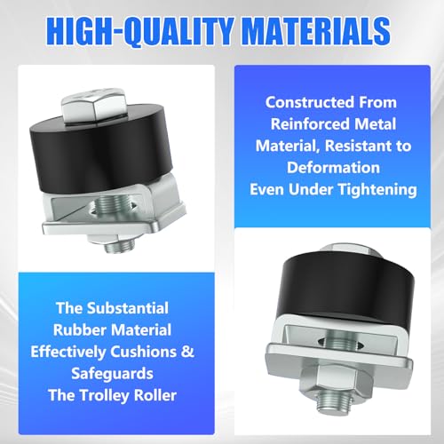 - 【Compatible with 1-5/8" Unistrut Strut Channels】Fits all standard 1-5/8" or deeper Unistrut strut channels—ideal for garage door rails, meat trolley tracks, sliding industrial channels, hoist systems, and general Unistrut framing applications., 【Heavy-Duty Impact-Resistant Stopper】Reinforced rubber construction absorbs shock, reduces metal impact, and prevents trolley rollers from slipping off the channel—delivering a safer, quieter, and more stable Unistrut system., 【M10 Anti-Loosening Bolt Design】Upgraded M10 locking screws with polymer gaskets provide exceptional grip, preventing loosening under load. Perfect for garage door trolleys, meat rail carriers, and industrial sliding rails., 【High-Durability Polyurethane Materials】Polyurethane rubber provides superior lifespan—up to 8× longer than standard rubber. Galvanized carbon steel hardware ensures corrosion resistance and stability in demanding environments., 【Easy Installation for DIY & Industrial Use】Quick, secure setup with one-hand tightening. Great for electric hoist rails, warehouse trolley systems, and garage Unistrut tracks. Comes in a 2-pack for small projects or maintenance replacement.