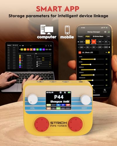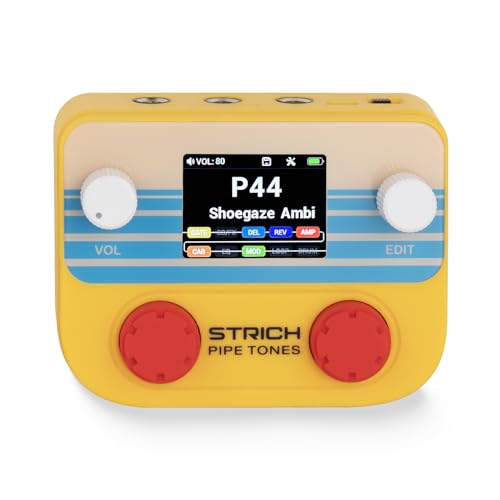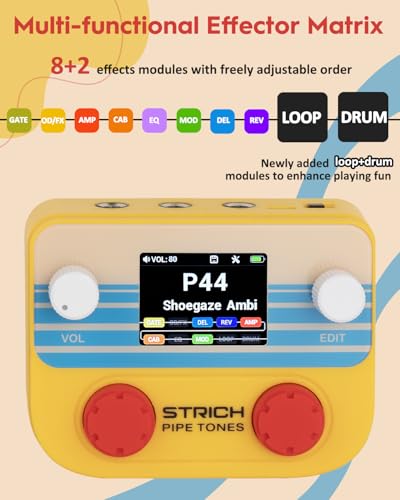 STRICH Pipe Tones Pocket Multi-Effects Processor for Guitar and Bass with 10 Effect Modules 125 Effects 40s Looper 100 Drum Patterns USB Audio Interface Wireless Control (Orange)