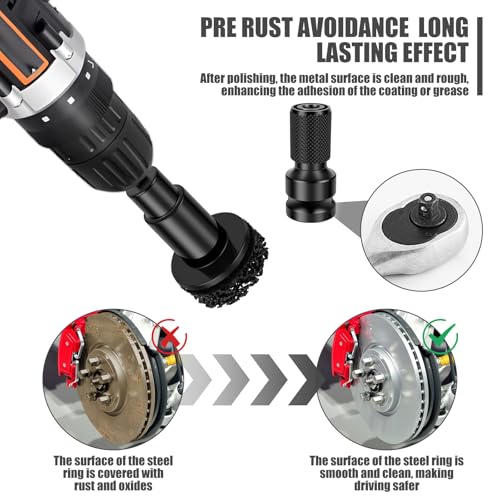 Wheel Hub Cleaning Kit, tud Rust Removal Tool, Brake Hub Resurfacing Kit, Including Grinding Head Adapter and Pads Chassis Brake Cleaner Tool for Car Rims Restoration to Fit Power Drill