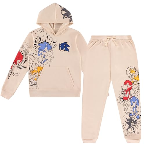 - Officially licensed Sega Sonic the Hedgehog 2-piece athleisure clothing outfit bundle featuring your child's favorite characters, Pullover Sonic the Hedgehog hoodie with large Sonic, Tails, and Knuckles artwork graphic screen printed on the front and sleeve, along with a contrast vibrant rib cuff, Contrast trim Sonic the Hedgehog jogger sweatpants with a semi-faux drawstring, fashionable contrast taping along the trim, and adorable screen printed Sonic artwork on the leg, High-quality graphics, colors, and prints ensure a completely authentic Sonic the Hedgehog experience, Made from a soft and comfortable cotton/poly fleece fabric that is machine washable and easy to care for
