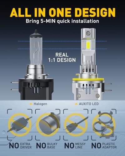 - 600% Ultra Brightness - AUXITO H11B led headlight bulbs adopt high-quality LED chips with 6500K cool white, making them 600% brighter than the original halogen bulbs. These h11b bulbs provide you with the best visibility and ensure the best possible illumination for a safer driving experience, Advanced Beam Pattern - Achieve the most perfect beam pattern with AUXITO H11B light bulbs, these led headlights offer the best light pattern and clarity for optimal visibility—no dark spots, shadow areas, blinding, or glare for oncoming drivers, enhancing safety significantly, Easy Installation - H11B led bulbs are all-in-one design, 1:1 mini size as halogen bulbs, perfectly fit into car housing and factory sockets. Compared to other H11B bulbs, ours are without an external driver and connector, non-polarity, no adapter required, truly plug and play. Easy to install within 5 mins, 60000Hrs Lifespan - All aluminum body and IP68 waterproof design make sure AUXITO H11B led light bulbs can work perfectly in harsh weather, greatly extends the lifespan up to 60000 Hrs, freeing you from the trouble of frequent replacements, Compatible With 98% Of Vehicle - AUXITO led H11B have a built-in CANBUS decoder, making them perfectly compatible with 98% of vehicles. Some vehicles may require an additional decoder. Please check your owner's manual or the part number on your original bulbs before purchasing