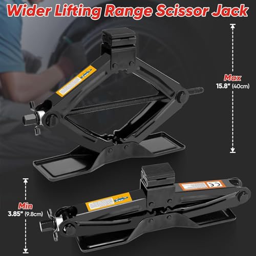 SHALL Scissor Jack Kit - 2 Ton (4409lbs) - Extended & Widened Base, 360° Rotatable Rubber Pad - Tire Change Kit with Ratchet & Lug Wrench - Universal Car Jack for Emergency Roadside Needs