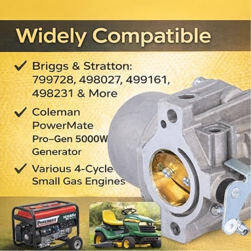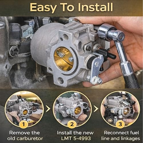 - [COMPATIBLE WITH MULTIPLE MODELS] The LMT 54993 carburetor is designed to fit a wide range of models including 799728 498027 499161 498231 494502 494392 495706 498134 496592 699318 699737 699856 69989628V707. It is also compatible with Walbro Engine Motor 734463213805DN and PowerMate ProGen 5000 Watts Portable Electric Generator. This versatile carburetor ensures seamless performance across various small gas engines., [ MATERIALS] Crafted from durable aluminum this carburetor is built to withstand the rigors of daily use. Its construction ensures it is not easily damaged and provides a long service life. The reliable design makes it a replacement accessory for your garden tools and lawn mowers., [EASY INSTALLATION] This carburetor kit comes with all necessary components including a fuel shut off valve fuel filter metal clamps gasket and fuel line. The direct replacement design allows for easy installation and replacement saving you time and effort. Simply replace the old carburetor to extend the life of your machine., [PERFORMANCE ENHANCEMENT] Designed for 4cycle small gas engines this carburetor ensures optimal performance for lawn tractors and mowers. It fits various small gas engines including models 282707 283702 283707 284707 284777 285707 286702 286707 288702 288707 289702 289707 28A702 28A707 28C702 28C707 28B702 28B705 28B706 28B707 28D702 28D707 28M706 28M707 28F707 28R707 28T707 28V707., [COMPLETE PACKAGE] The kit includes everything you need for a successful replacement: 1 carburetor 1 fuel shut off valve 1 fuel filter 2 metal clamps 1 black accessory 1 gasket and 1 fuel line. This comprehensive package ensures you have all the parts required for a smooth and efficient installation process.