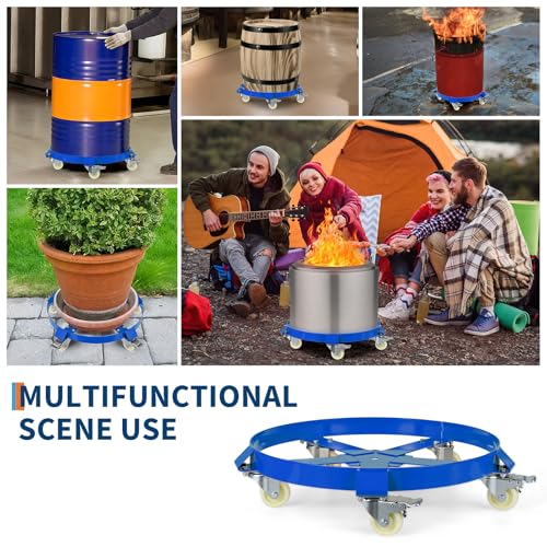 - 【High Load Capacity】Built to handle heavy-duty tasks, this drum cart easily supports loads up to 1000/1,250 pounds, making it ideal for transporting 55-gallon drums and other heavy containers with minimal effort., 【Sturdy Carbon Steel Frame with Cross-Strap Design】Crafted from premium carbon steel, the cart features a robust cross-strap construction that secures drums firmly, preventing bending or tipping. Its galvanized, corrosion-resistant finish ensures long-term durability., 【Effortless Mobility with Swivel Wheels and Brakes】Four universal swivel wheels, including two with locking brakes, provide smooth 360-degree maneuvering even in tight areas. Anti-tip wings stabilize the load, minimizing the risk of spills during transport., 【Fast and Simple Assembly】The cart comes with clear instructions and all necessary hardware for quick setup. Just attach the wheels to the designated screw holes, and it’s ready to use within minutes., 【Versatile Transport Solution】Perfect for moving not only oil drums but also wine barrels, trash cans, garden pots, and more. Suitable for use in professional warehouses, industrial settings, garages, and homes to streamline heavy item handling.