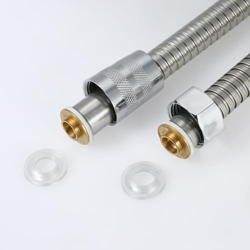 - Easy To Install: Brass nut& brass insert make it easy to install, no tools required., Standard Size: Standard length hose, 1/2 in NPF solid brass connector fits standard hoses., Standard Size: Standard length hose, 1/2" NPF solid brass connector fits standard hoses., Proof: Improved leakproof structure for better performance, and the bursting is 6MPa., Hose: Premium chromiumplated stainless steel exterior tube and inner transparent PVC tube, which is flexible, nonkink and .