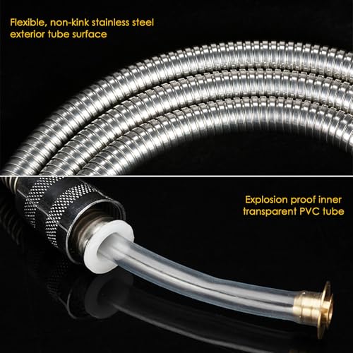 79 Inches Long Flexible Stainless Steel Hose for Handheld Replacement with Brass Fitting Kink Proof Leak Universal Standard Connector Component