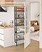 - Maximize space with a slim design: Make efficient use of your bathroom door with this sleek, 5-tier door storage rack. Its slim profile makes it perfect for compact spaces, providing ample storage for towels, toiletries, and other essentials without taking up valuable floor space., Versatile use for the kitchen and beyond: Not just for the bathroom! This versatile shelf is also ideal for organizing spices, jars, and kitchen utensils. Keep your cooking utensils handy and save space on your countertop at the same time., Durable and sturdy construction: This shelf is made of high-quality, rust-resistant metal and is designed to withstand the humid conditions in the bathroom while maintaining its elegant appearance. The sturdy shelves provide a stable and reliable surface for all your items., Stylish and functional design: Its minimalist design and neutral finish blend seamlessly into any décor, making it a practical and stylish addition to your home. Perfect for bathrooms, kitchens, laundry rooms, or student dorms., Two simple and secure installation methods: This shelf offers two mounting options for different requirements. (1) Attach the shelf directly to the wall with four adhesive pads—simply peel off the protective film for quick and easy installation. (2) Attach the shelf to the wall with screws for lasting stability. In addition, two non-slip suction cups on the underside provide extra stability and prevent slipping.