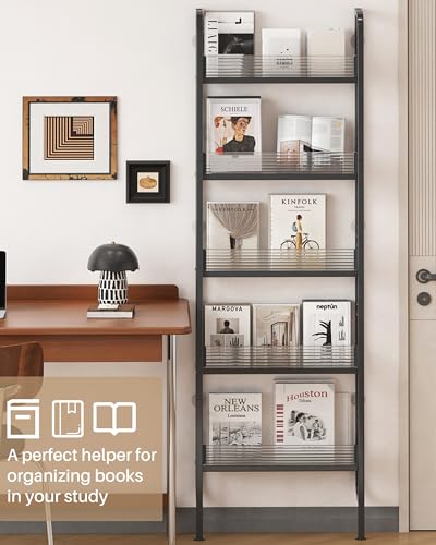 Ornestia Slim Space-Saving Storage Shelf, Behind The Door Bathroom Shelf Narrow 5-Tier,Freestanding Narrow Shelving Unit for Bathroom, Kitchen, Closet and Laundry Room Black