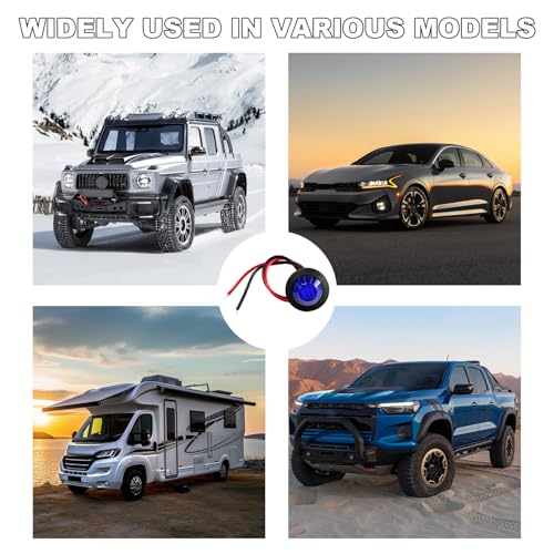 - Super Bright: Our car marker light comes with 3 built-in high-quality LED beads that emit a bright beam of light. It maximizes visibility on dark nights or in low-light environments, which makes your car easier to be noticed by other vehicles at night and improves driving safety, Premium Quality: Waterproof and dustproof PVC lampshade effectively protects the inside of the marker light from bad weather. The rubber ring and potting adhesive are firmly welded to further ensure the sealing of the light. It is shock-absorbing to protect your light from scratches, Easy to Use: This marker light has a 2-wire design for easy installation. First, drill a 3/4-inch hole. Next, place the rubber gasket into the hole. Then, insert the light fully into the gasket and complete the wiring correctly. Note: The red wire is positive and the black wire is negative, Product Includes: Our round car marker light with unique and fun look has five light colors for you to choose from (red, yellow, green, blue and white). You will receive ten marker lights after purchasing. With sufficient quantity, it is enough to meet your daily use and replacement needs, Widely Applicable: The 3/4 inch LED marker light is suitable for cars with 12V DC, trailers, trucks, pickups, SUVs, golf carts, RVs. It is commonly used as taillights, marker lights, side marker lights, clearance lights, turn signals, parking lights, back-up lights, grille lights and so on