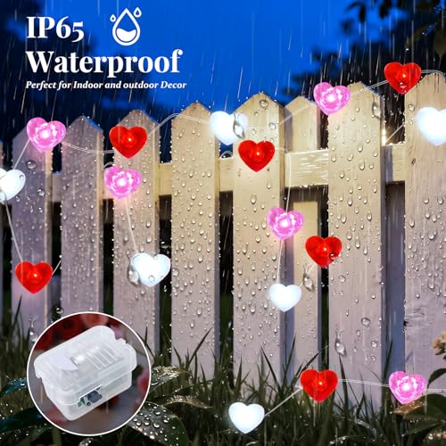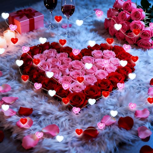 ZGWJ Valentine's Day LED Fairy Lights, 2 Pack 20 LED 7FT Red-White-Pink Heart String Lights Battery Operated,Valentines Lights with 3 Modes for Bedroom,Mother's Day,Parties Wedding Decoration