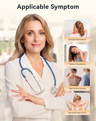 - Size Chart: To ensure the best fit for your measurements, please refer to the size chart below. Use a soft tape measure to accurately measure your neck circumference and neck height. Small: Neck circumference 27-32 cm, height 7.5-8.5 cm; Medium: Neck circumference 32-40 cm, height 7.5-8.5 cm; Large: Neck circumference 40-46 cm, height 7.5-9 cm. If between sizes, choose the larger for comfort., [Reminder] Our neck braces are NOT massage products. They are auxiliary products and CANNOT completely replace treatment plans. Before purchasing and using, consult your family doctor or other professionals to see if it is suitable for you. Correctly measuring your size and choosing the appropriate size will provide a better experience. Can be used while sleeping to help stabilize the neck. It is NOT a substitute for a pillow., Multi-Layer Comfort Construction - Medical-grade memory foam core with Lycra cover ensures breathable support. EVA stabilizer board delivers targeted warmth to reduce joint stiffness and improve circulation after prolonged work or exercise., Precision Temperature Control System - 3 therapeutic heat levels (40℃ to 50℃) for targeted pain relief. Equipped with an overheat prevention chip and 30-minute auto shut-off guarantees safe application, maintaining optimal heat consistency for muscle relaxation and tension release., Anatomical V-Shape & Adjustable Fit - V-shaped jaw support and soft foam collar contour naturally to your neck while 360° adjustable Velcro straps (34-42cm) prevent hair entanglement. Perfect for all-day wear at work or home., Portable USB Power & Multi-Scenario Use - Includes 2M USB charging cable for continuous heat therapy anywhere. Lightweight design ideal for computer work, long flights, sports recovery, or arthritis management.